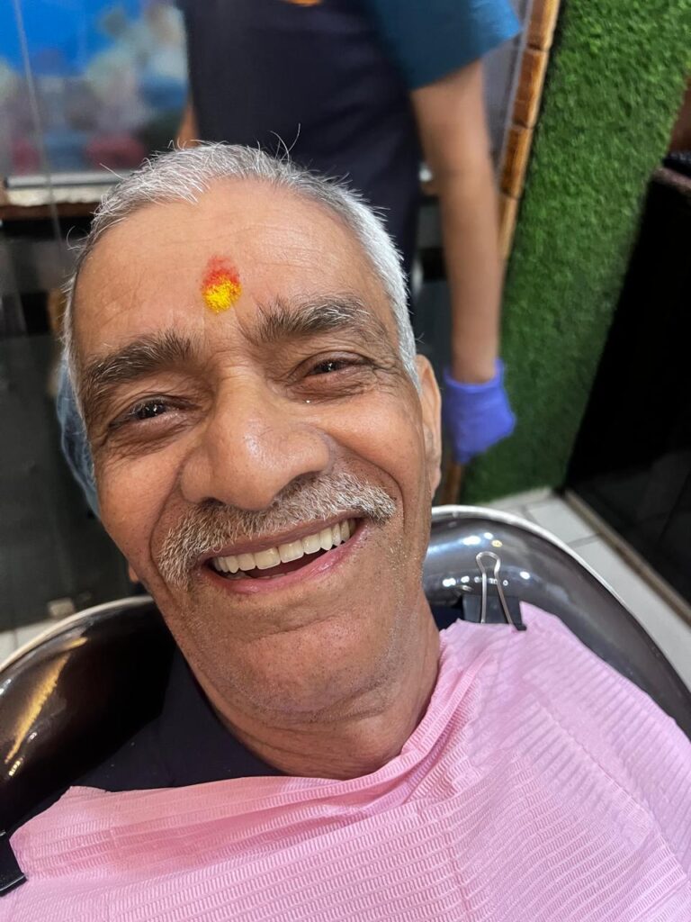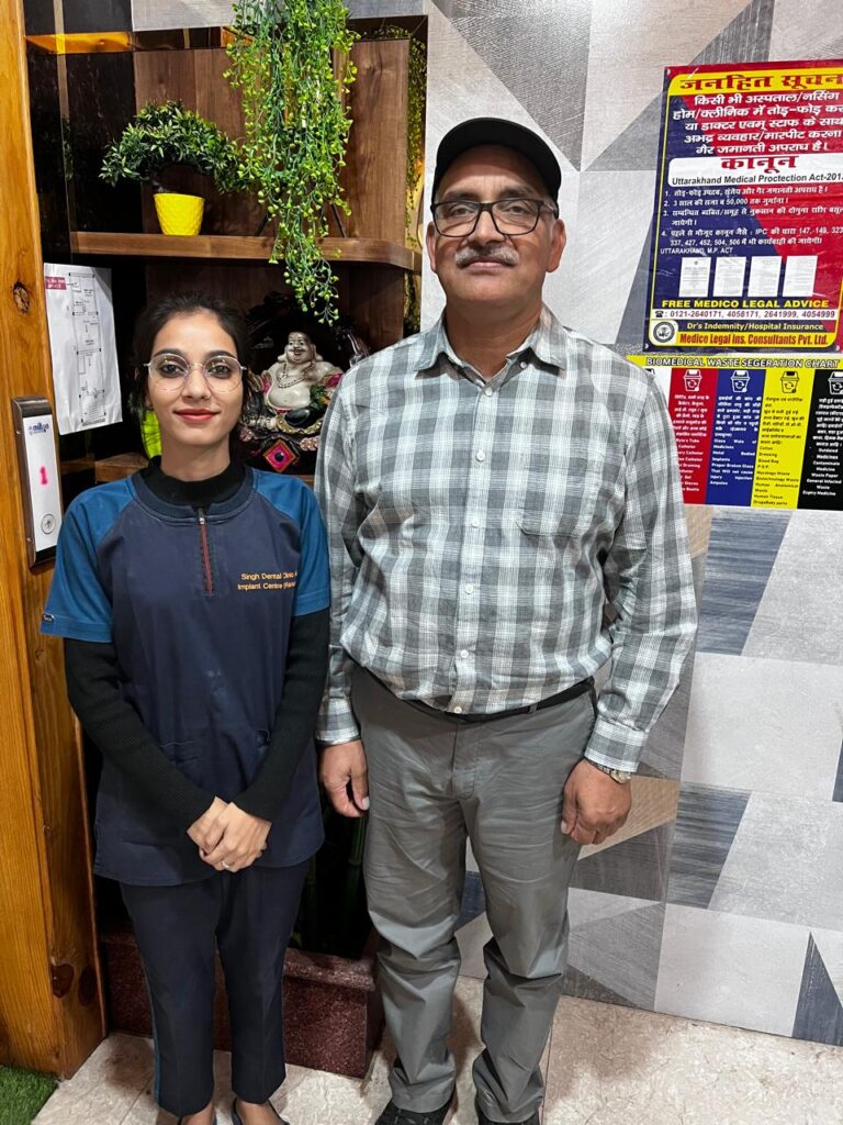 Our happy dental implant patient at Singh Dental Clinic and Implant Center, Ramnagar, enjoys a restored smile with enhanced confidence, comfort, and long-lasting oral health.